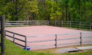 Full-sized 200' × 100' arena, containing a regularly groomed all-weather surface stone dust footing. Equipped with pole-mounted halogen lights, our arena is perfect for: