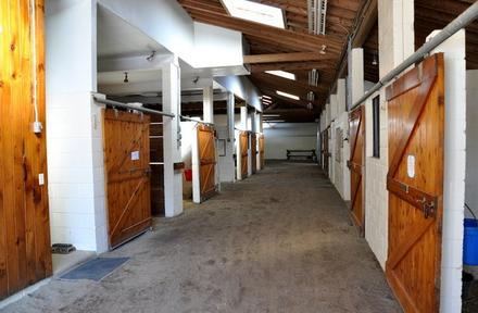 Bright, airy 132' x 72' stable with 10' × 12' matted box stalls, wide aisles, high ceilings with skylights, and a maintained indoor riding arena with sand-mix footing. Barn includes: